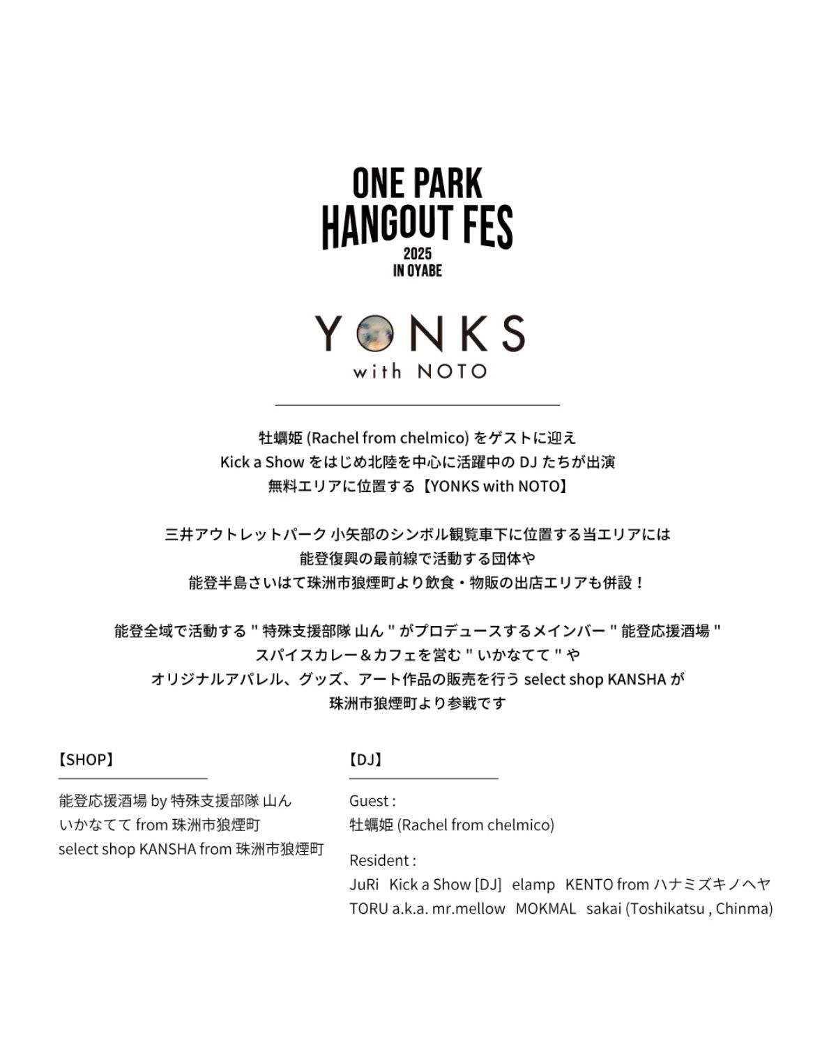 "YONKS with NOTO" と題して小矢部のアウトレットの象徴的な観覧車下のエリアで能登の仲間が出店します
