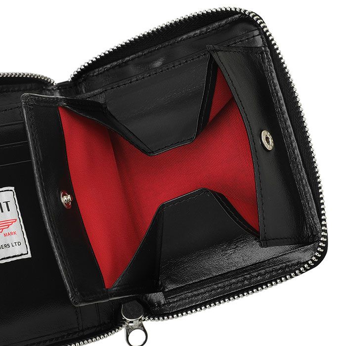 ウォレットはLewis Leathersで採用している馬革を贅沢に使用し、裏地にはLewis Leathersならではの発色の良いレッドのキルティング生地を使用しています。メインファスナーはLewis Leathers製のファスナーを採用しています。
