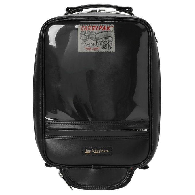 タンクバッグは屋外での使用を想定し、表地にフェイクレザーを、内装にはLewis Leathersならではの発色の良いレッドのキルティング生地を使用しています。Lewis Leathersのロゴを箔押ししたブランドタグやAVIAKITタグを取り付けることで、ライダースジャケットに用いられる仕様をバッグに落とし込んだスペシャルアイテムです。