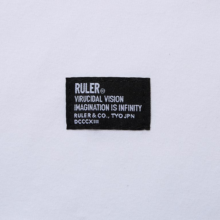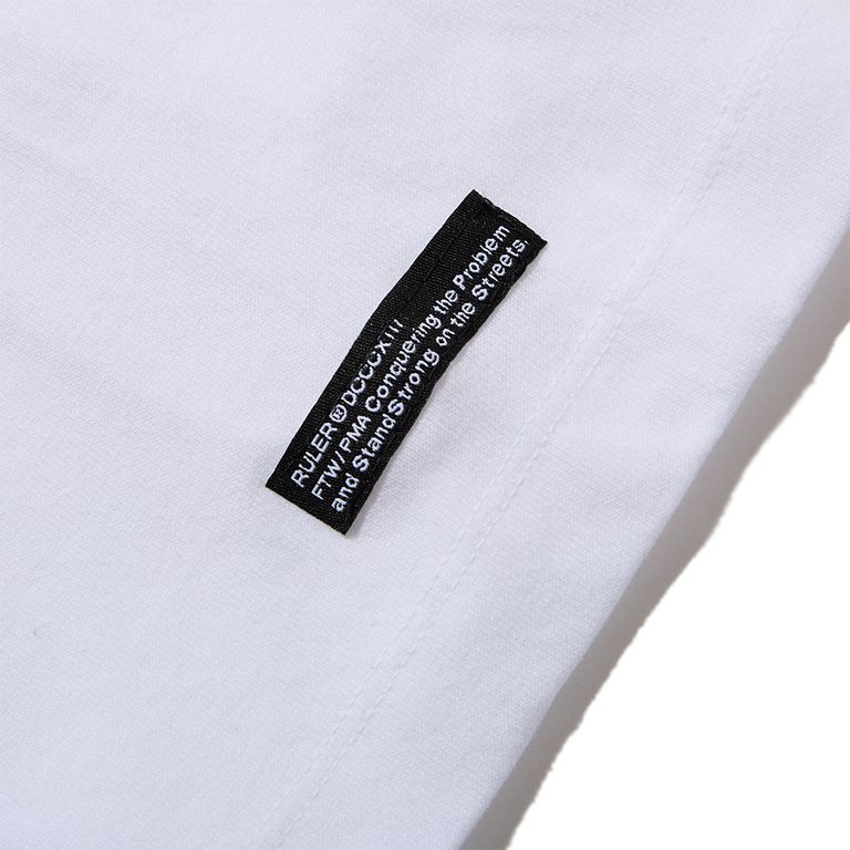 フロントにシルクスクリーンでアートワーク, 右裾にI.D.タグ, 左袖にATTDタグを配置。