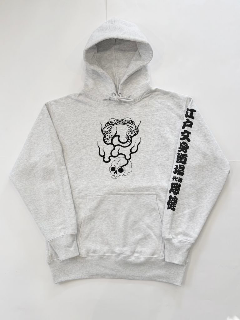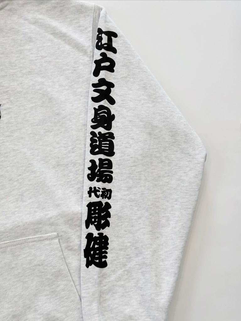 PULLOVER HOODIE "がまん"(ASH GRAY) SKANDA 26TH DESIGN by江戸文身道場 彫健