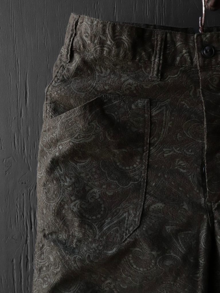 1920s GOTHIC PATTERN BRUSHED VIYELLA MONTGOMERY TROUSERS (SMOKY OLIVE)